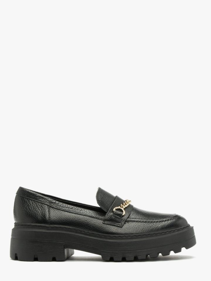 RYŁKO MOKASYNY | KOBIETA Czarne mokasyny ze złotym łańcuszkiem