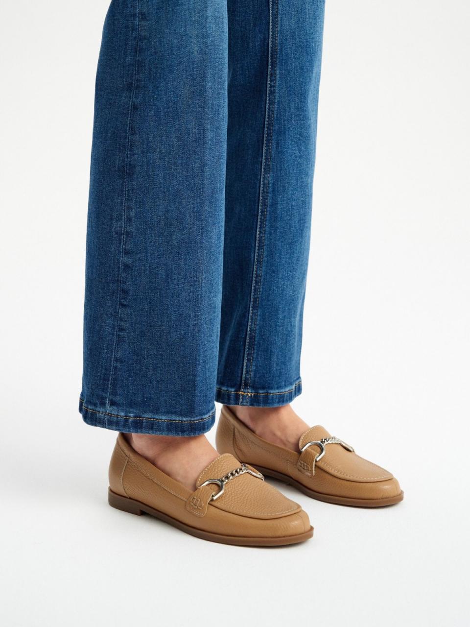 RYŁKO MOKASYNY | KOBIETA Beżowe mokasyny z ozdobą na płaskiej podeszwie
