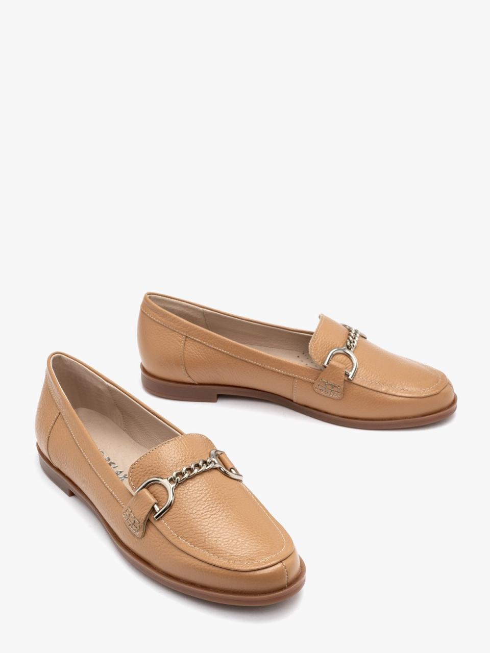 Beżowe mokasyny z ozdobą na płaskiej podeszwie…