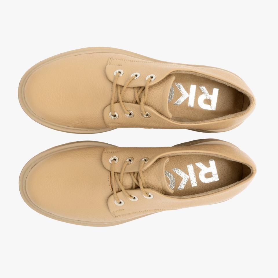 Beżowy półbut na grubej podeszwie z linii RKO. Model wykonany ze skóry licowej. Podszewka wykonana ze skóry i tkaniny, a wyściółka skórzana. Lekka podeszwa o grubości 5,5 cm. Nosek okrągły. R.FLY – Niezwykle lekka i sprężysta podeszwa wykonana z materiału EVA. Zapewnia wysoki komfort użytkowania. Nieporowata, łatwa do czyszczenia wilgotną szmatką. Dystrybutor: Brawo Sp. z o.o. ul. Dworcowa 19, 34-130 Kalwaria Zebrzydowska;