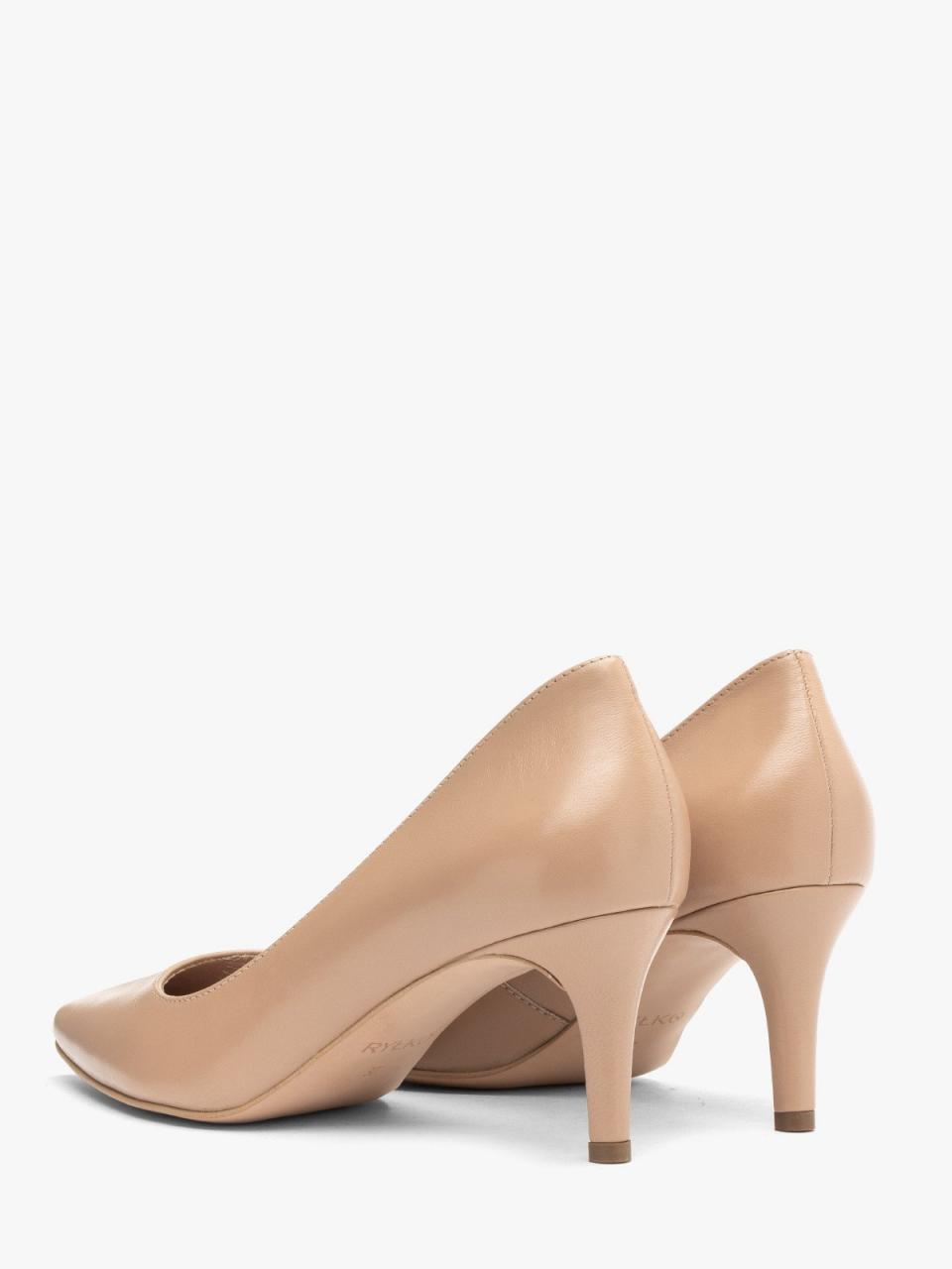 Beżowe czółenkana szpilce z linii RYŁKO. Model wykonany ze skóry licowej. Podszewka i wyściółka skórzana. Szpilka oblekana o wysokości 6,5 cm. Wysokość obcasa uśredniona dla rozmiaru 37. Nosek w szpic. Dystrybutor: Brawo Sp. z o.o. ul. Dworcowa 19, 34-130 Kalwaria Zebrzydowska;
